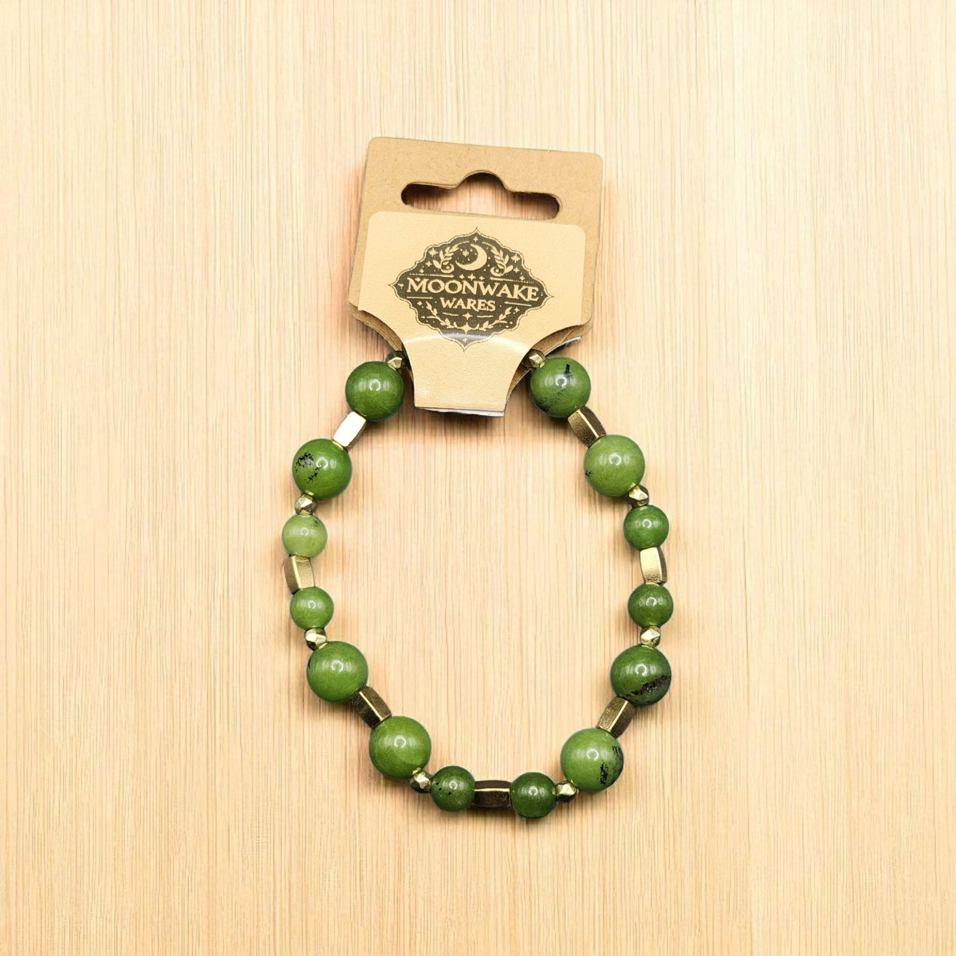 Materials: Nephrite jade beads, nickel-free alloy spacers.