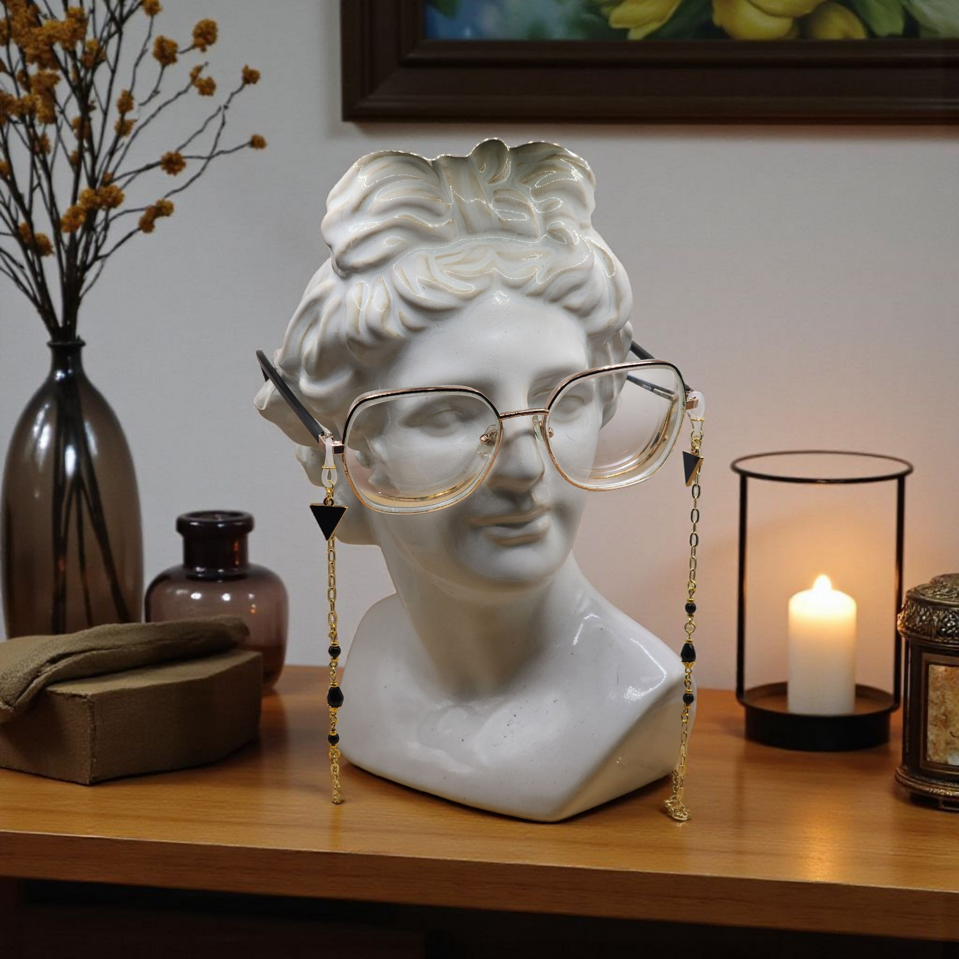 This handmade eyeglass chain pairs sleek sophistication with protective energy. The deep, glossy shine of Obsidian and black glass beads catch the light against the warmth of a 14k gold chain, accented by golden details that give this piece an elegant, luxurious finish.